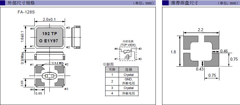 EPSON晶振,進口晶振,FA-128S晶振,兆赫茲晶振,FA-128S 19.2000MF12Y-AG3