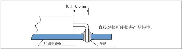 在一個不同擴張系數電路板(環氧玻璃)上焊接陶瓷封裝產品時,在溫度長時間重復變化時可能導致端子焊接部分發生斷裂,請事先檢查焊接特性.