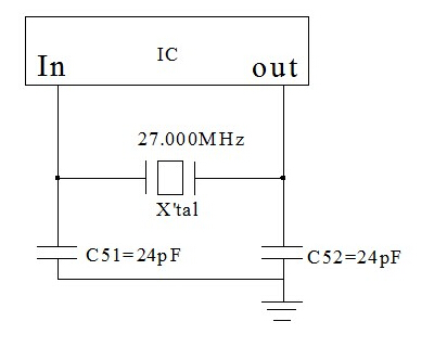2.理論值負載電容計算方式如下,由C51 C52計算串聯(lián)電容后加上離散電容等于實際的負載電容,雜散電容內(nèi)含PCB Layout、芯片電極等等因素造成.