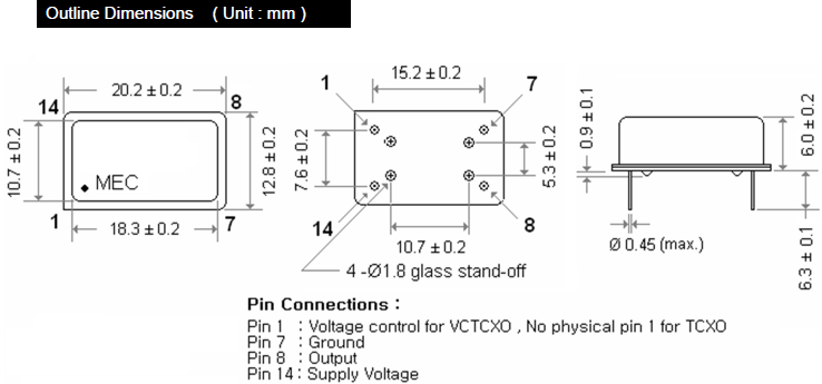 (2) 晶振生產廠家在設計時請參考相應的推薦封裝MERCURY晶振,溫補晶振,M14T晶振,TCXO晶振。