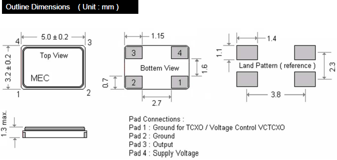 (2) 晶振生產廠家在設計時請參考相應的推薦封裝MERCURY晶振,溫補晶振,M572T晶振,有源晶振。
