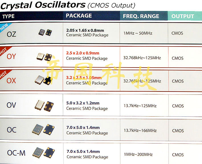 OX-3225振蕩器,泰藝有源晶振,進(jìn)口臺(tái)灣石英晶振