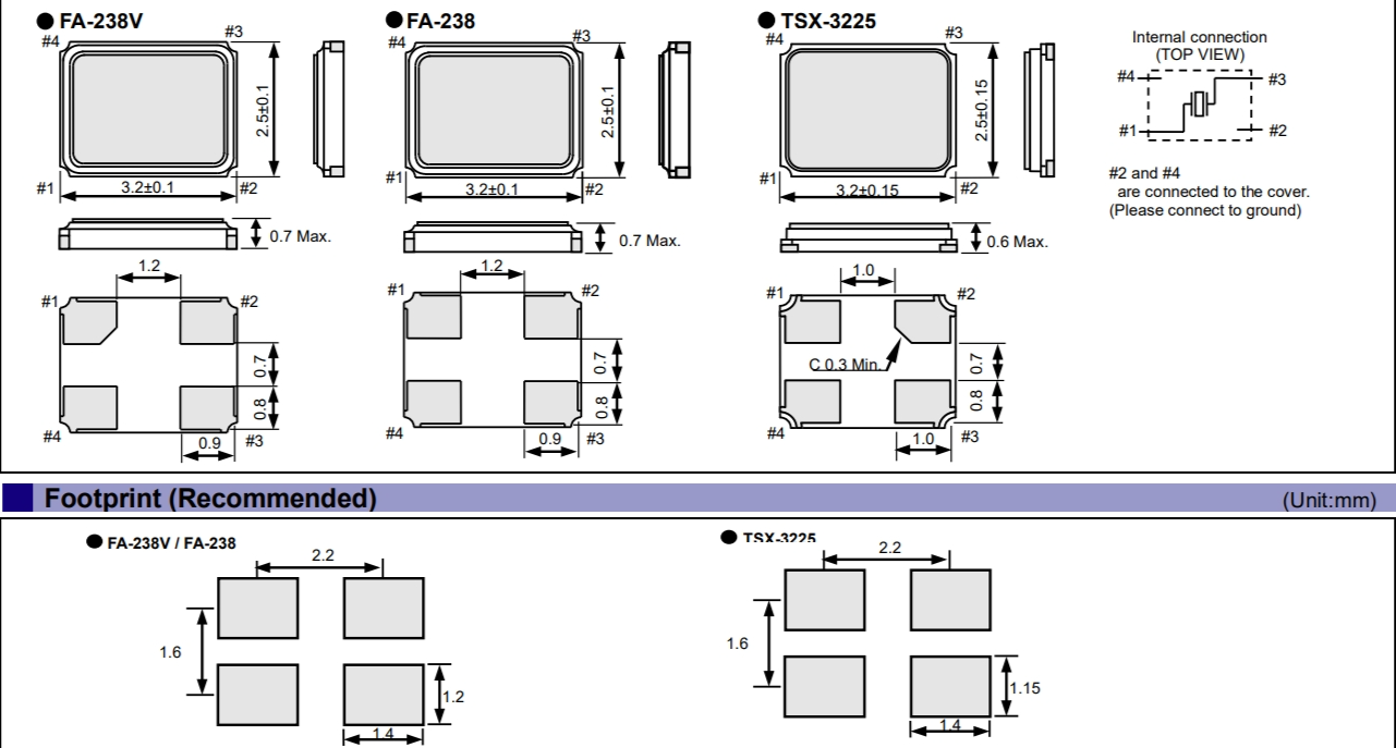 | Size/Dimension尺寸 | 3225mm | 安裝方式 Installation: | Surfacemount |