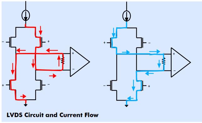 LVDS與其他邏輯接口不同,因?yàn)樗皇褂秒妷翰▌?dòng),而是使用電流波動(dòng)。它通過(guò)控制流經(jīng)電路的電流的極性來(lái)工作。