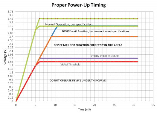 POR/BOR操作:設備啟動時會發生上電復位從Vss級別開始,掉電情況當先前供電的設備掉落時發生低于指定范圍,器件RAM保持電壓(VRAM)較低比VPOR/VBOR電壓跳變點,當VPRO /VBOR<Vcc<2.7V,電氣性能優異恒溫晶振不符合數據手冊規范,當設備上電時,設備Vcc將越過VPOR/VBOR電壓,一旦Vcc電壓以下將超過VPOR/VBOR電壓發生:•加載易失性寄存器價值形成相應的非易失性寄存器.•TCONF寄存器將加載出廠設置節目.•該設備具有數字/模擬功能操作.